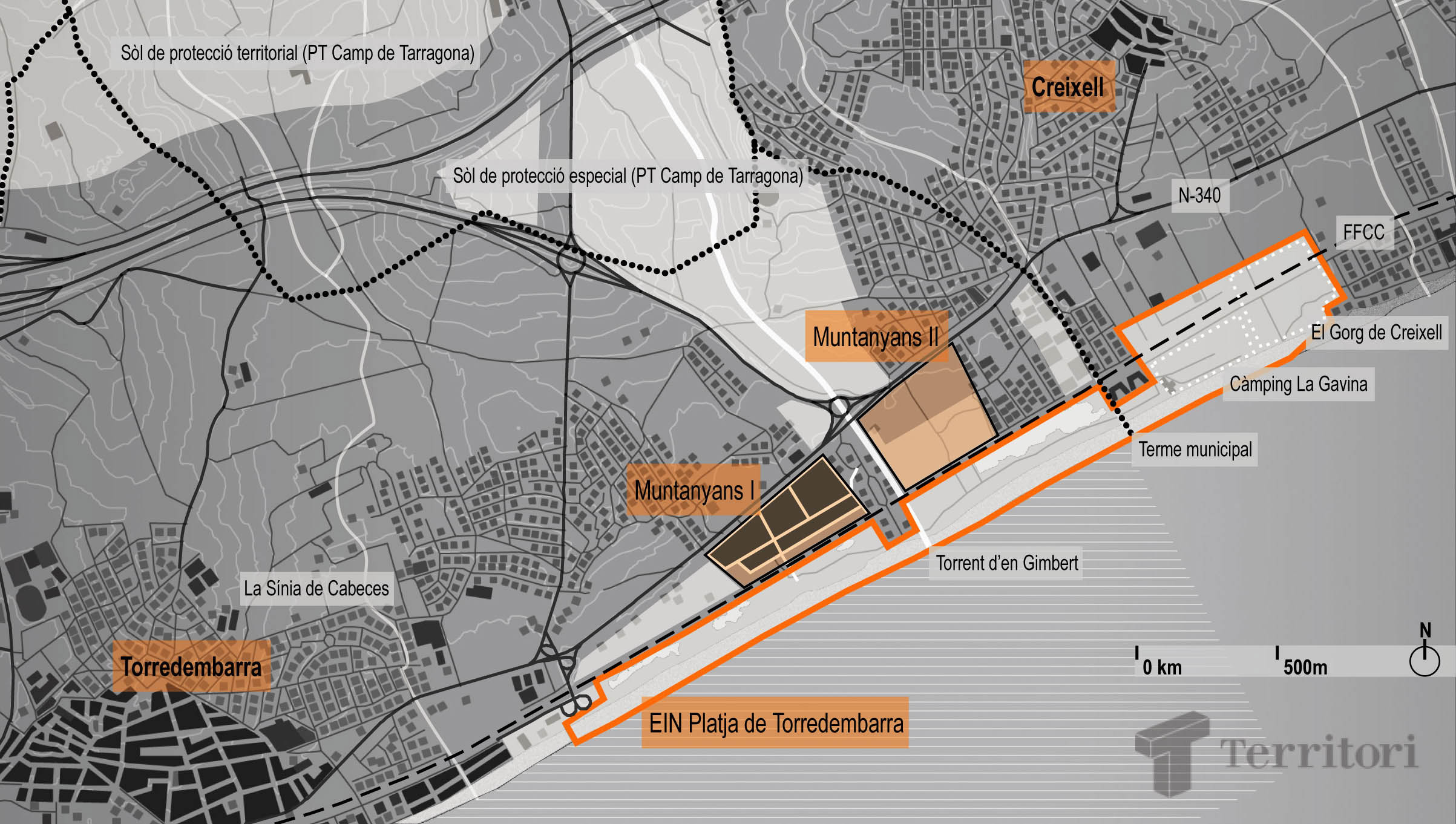Pla urbanístic dels Muntanyans (Torrdembarra). Mapa: Montse Ferrés