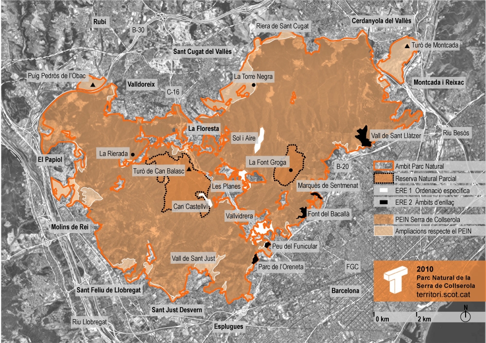 TORRE NEGRA i rodalia, la Floresta, les Planes i Can Busquets a Sant Cugat del Vallès; Roques Blanques-Can Canals i Can Puig-les Torrenteres al Papiol; Pi del Balç-riera del Molí a Molins; Can Cuiàs, el Cerdanet i torrent del Duc i Riera de la Salut-Mas Lluhí a Sant Feliu de Llobregat;