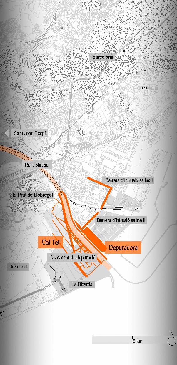 Una de les actuacions consistia a construir les instal·lacions necessàries per a aplicar un tractament terciari (desinfecció, eliminació de nutrients i contaminants específics, i oxigenació) al 40% de les aigües residuals que rep la depuradora, de manera que aquesta aigua disposaria de prou qualitat per a ser reutilitzada. Aquesta aigua es transportaria riu amunt, gràcies a 20 km de canonades, fins Sant Joan Despí. Des d’allí, les aigües s’aprofitarien per al reg de cultius, per a la via pública i les indústries i per a assegurar el cabal ecològic del riu i el manteniment de les zones humides del delta. Estava previst que es reutilitzessin una mitjana de 50 hm3 cada any. L’ any 2004, l’aigua depurada encara s’abocava mar endins a través d’un emissari submarí de 3,7 km de longitud.