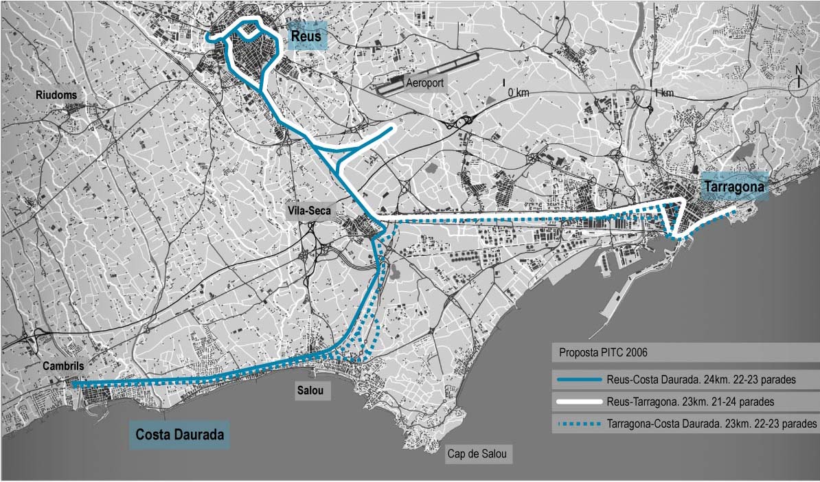 Tot i no detallar el recorregut, es dibuixaven tres línies. La primera amb un traçat de 23 km i amb 22 o 23 parades entre Tarragona, Salou i Cambrils; la segona entre Reus, Vila-seca i Cambrils, amb 24 km i també 22 o 23 parades; finalment, una darrera que connectaria Tarragona i Reus (23 km i entre 21 i 24 parades). S’assenyalava, a més a més, la intenció d’impulsar un intercanviador de transport de viatgers, tot confluint els serveis d’alta velocitat, Regional, Rodalies, trens tramvia i autobús.